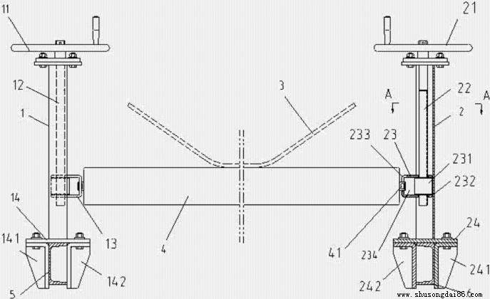 这种方法不但增加了更换难度以及工人的劳动强度,而且在处于操作空间狭小时,使得更换损坏皮带托辊时会更加的不便;